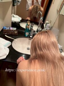 彼女が最大限に興奮したところで洗面所に移動し、淫らな姿を鏡で見せてやる。